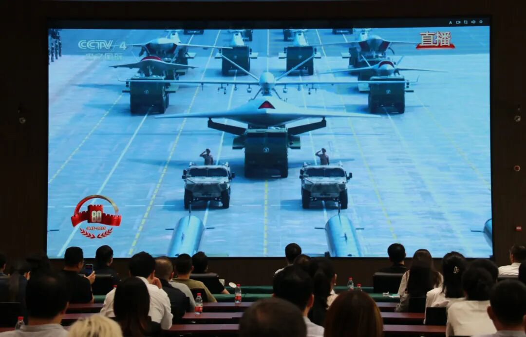 9月3日上午,纪念中国人民抗日战争暨世界反法西斯战争胜利80周年大会在北京天安门广场隆重举行。沈阳航空产业集团及园内企业纷纷组织党员干部群众集中观看,共同回顾历史,凝聚奋进力量。